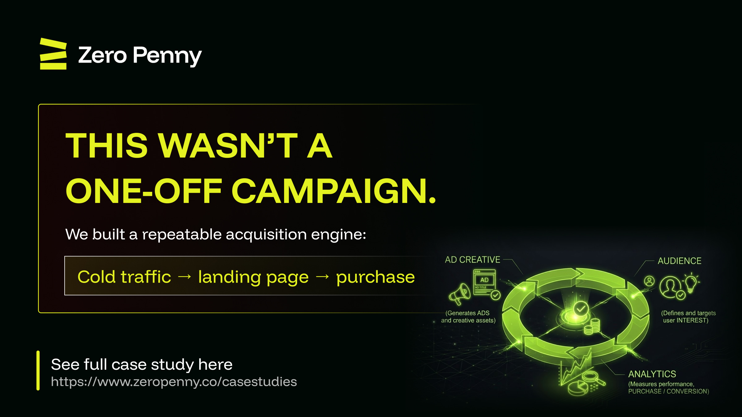 - A growth partner, not a vendor. Zero Penny operates as an extension of their team with 24/7 support and real-time optimization. They came in skeptical. They stayed because the system keeps compounding.